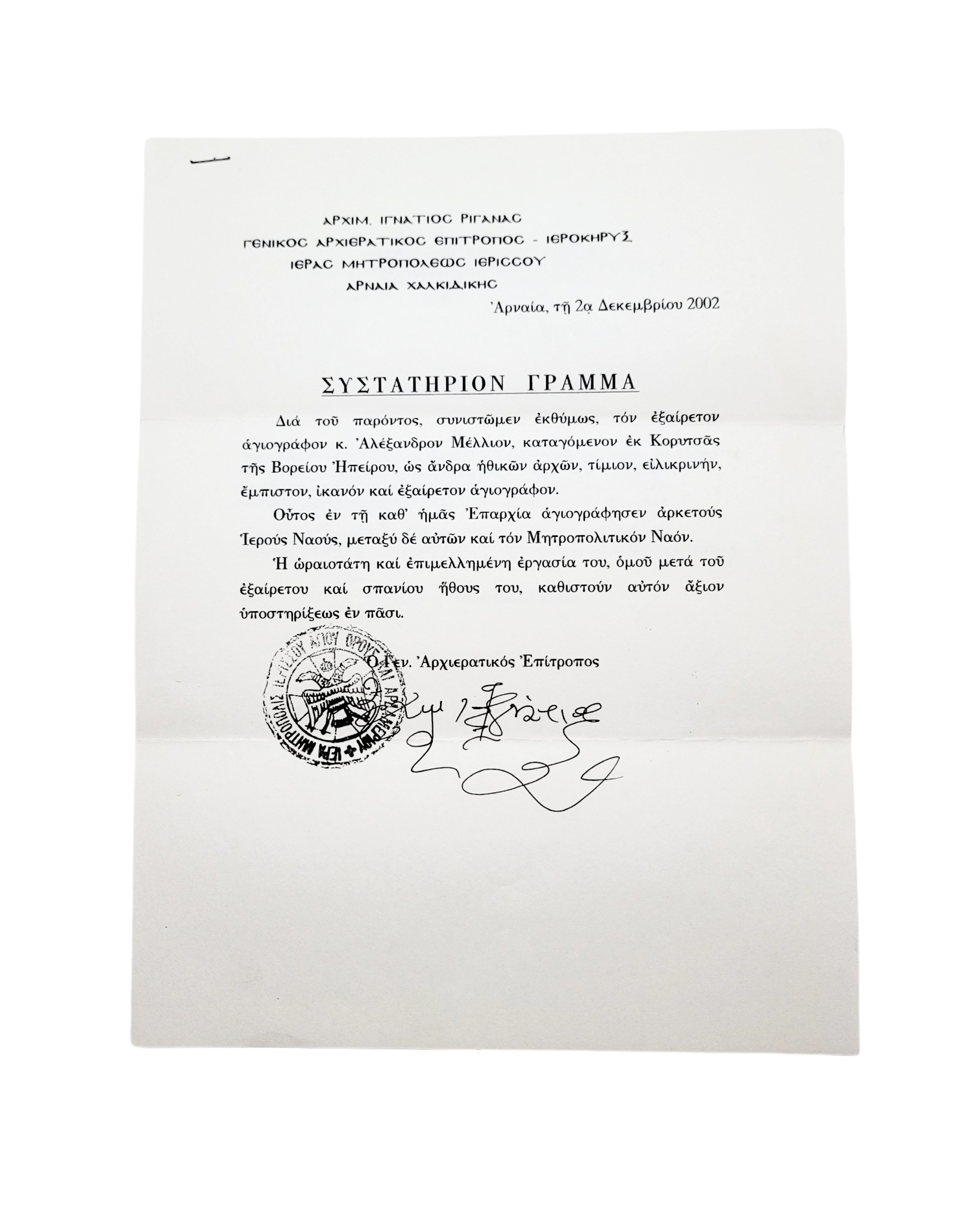 The arrangement of icons (catataxis) and the architecture of each church are distinct and unique, yet they work together in harmony. Their shared goal is to connect us with God through the sacred and the divine. Because of this, every church requires a custom iconographic program that reflects its particular structure and spirit. This work demands deep theological understanding. For over three decades, I have collaborated with the esteemed theologian Dimiter Katsika - Kappadoki, a specialist in archaeological theology and a respected author in the fields of humanities, art, philosophy, religion, and ethics.